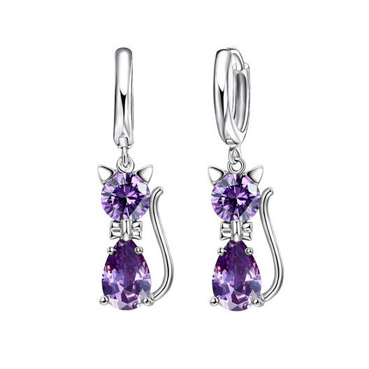 Petite & modest, this set of elegant kitty earrings subtly tells the world that you love cats. Comprised of 925 Sterling Silver and featuring Cubic Zirconia, the Blank Stare Kitty earrings measure 1 1/4" by 3/8" and have a Huggie Hoop backing.