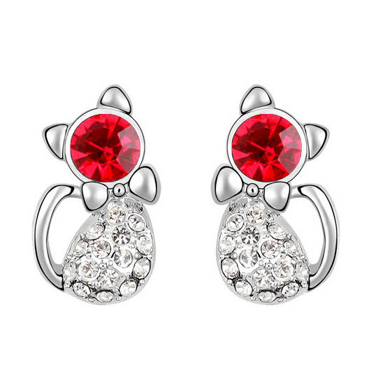 Curtsy Kitty Earrings, Red 'n Silver