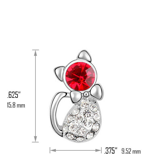 Despite their size, this set of petite kitty stud earrings radiate enough sparkle to surely catch a person's eye. Comprised of silver-plated zinc alloy and featuring Rhinestones, the Curtsy Kitty earrings measure 5/8" by 3/8" and have a Post backing.