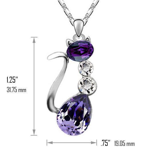 Make way for this conversation-starting, trendy cat necklace that will steal the show. Coming in pink, purple and caramel-colored Austrian Crystals, this Cat-Fro Kitty pendant will surely turn heads. It measures 2 by 1 5/8 an inch and is accompanied by a 32-inch chain.