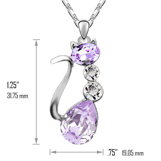 Make way for this conversation-starting, trendy cat necklace that will steal the show. Coming in pink, purple and caramel-colored Austrian Crystals, this Cat-Fro Kitty pendant will surely turn heads. It measures 2 by 1 5/8 an inch and is accompanied by a 32-inch chain.
