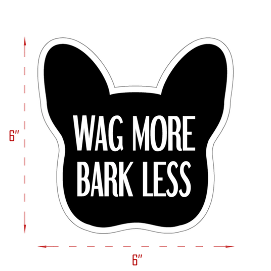 A good lesson for all of us, the 'Wag More Bark Less' decal will surely trigger a smile from others. These die-cut stickers are great for both indoor and outdoor use, consisting of thick, water-resistant, laminate vinyl material, they can be applied to any surface from cars to laptops to skateboards. The 4" and 6" size options refer to the decal’s width, height will vary.